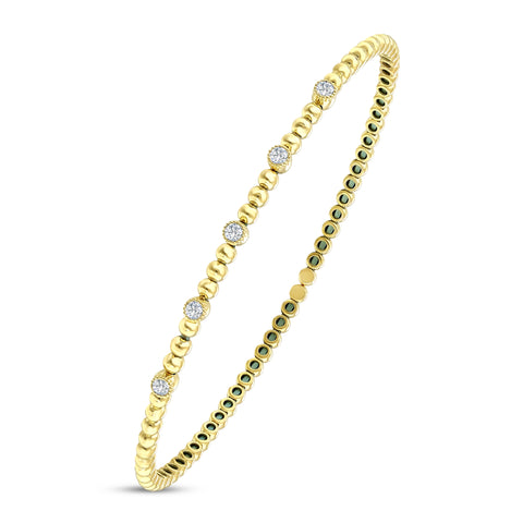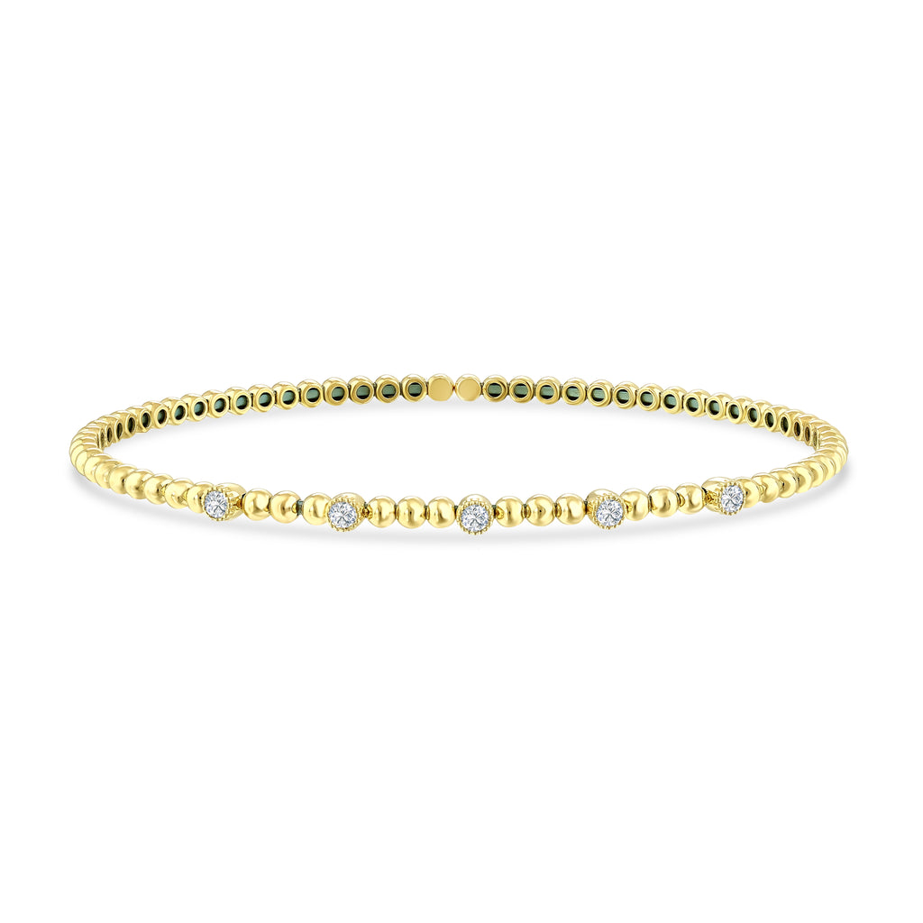 Crafted in 14K yellow gold, this 4.26-gram beaded bangle by Sevan Designs features five bezel-set natural diamonds totaling 0.21 carats. The evenly spaced diamonds add just the right amount of sparkle to this modern, stackable design—perfect for everyday elegance or layering with your favorite pieces.