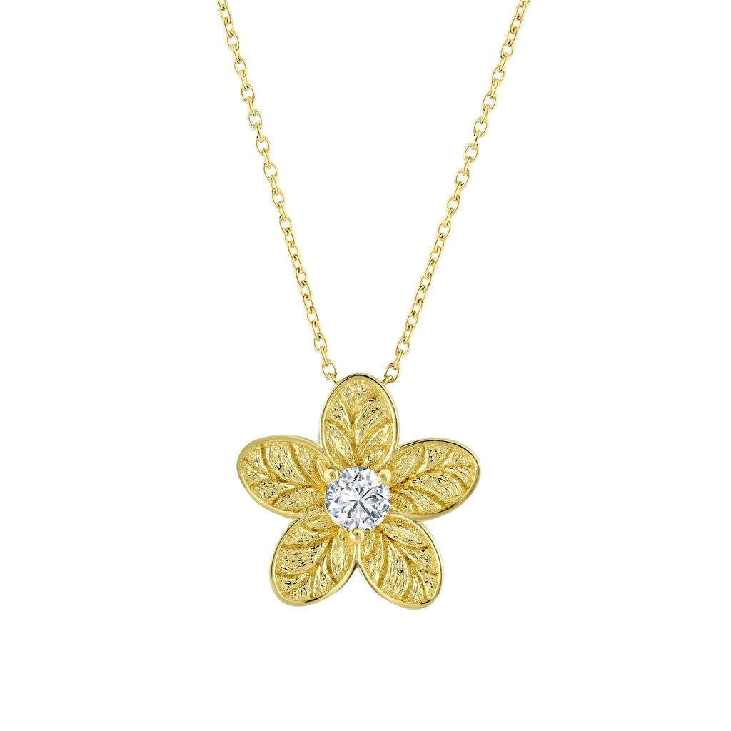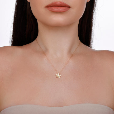 Delicate and radiant, this floral necklace is a graceful expression of nature’s beauty. Crafted in 14K yellow gold with a total gold weight of 2.12 grams, the five-petal flower pendant is intricately textured with leaf-like details. At its heart sparkle natural diamond (0.09 ct total), adding brilliance and charm. A perfect blend of elegance and femininity — ideal for daily wear or as a heartfelt gift.