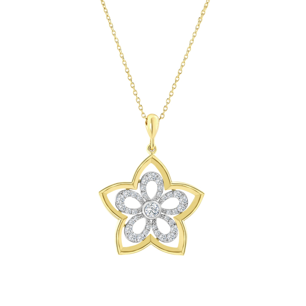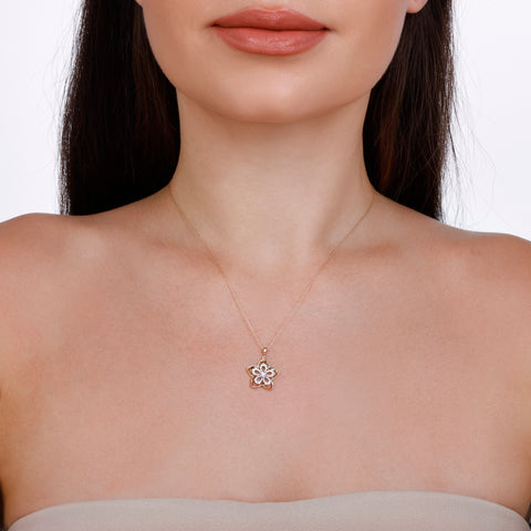 A delicate floral pendant by Sevan Design, crafted in 14K yellow gold and adorned with 36 natural diamonds (0.19 ct). The openwork flower design sparkles with elegance, blending timeless beauty and modern charm—perfect for everyday luxury or special occasions